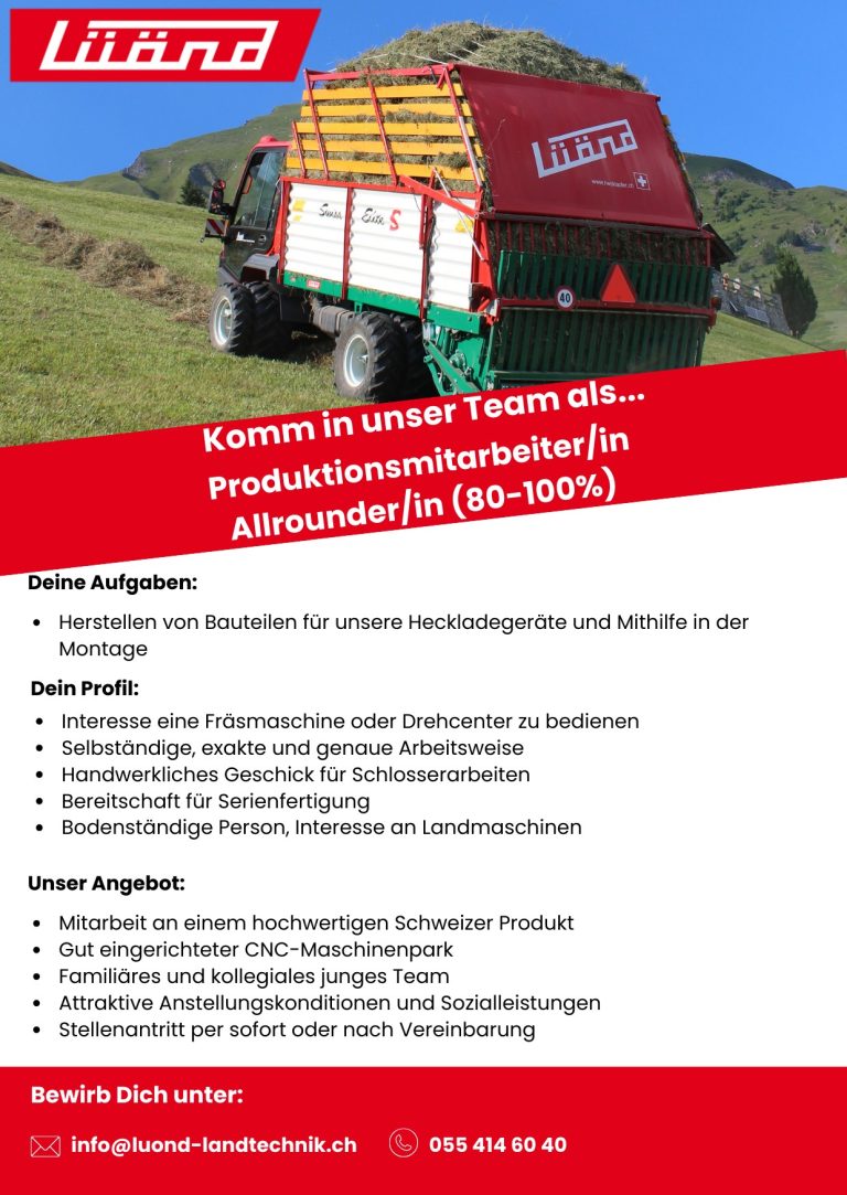 An unsere Mitarbeitenden stellen wir hohe Ansprüche, die wir gerne leistungsgerecht und mit einem angenehmem Arbeitsklima entlohnen. Unsere Mitarbeitenden gestalten ein innovatives Unternehmen mit. Wir geben ihnen gerne die Freiheit dazu und freuen uns über ihre Eigenverantwortung und Motivation.